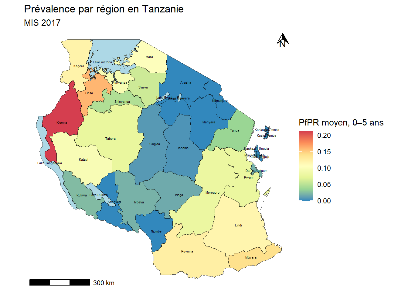 labs(color = "PfPR, 0–5 ans", subtitle = "MIS 2017") +
